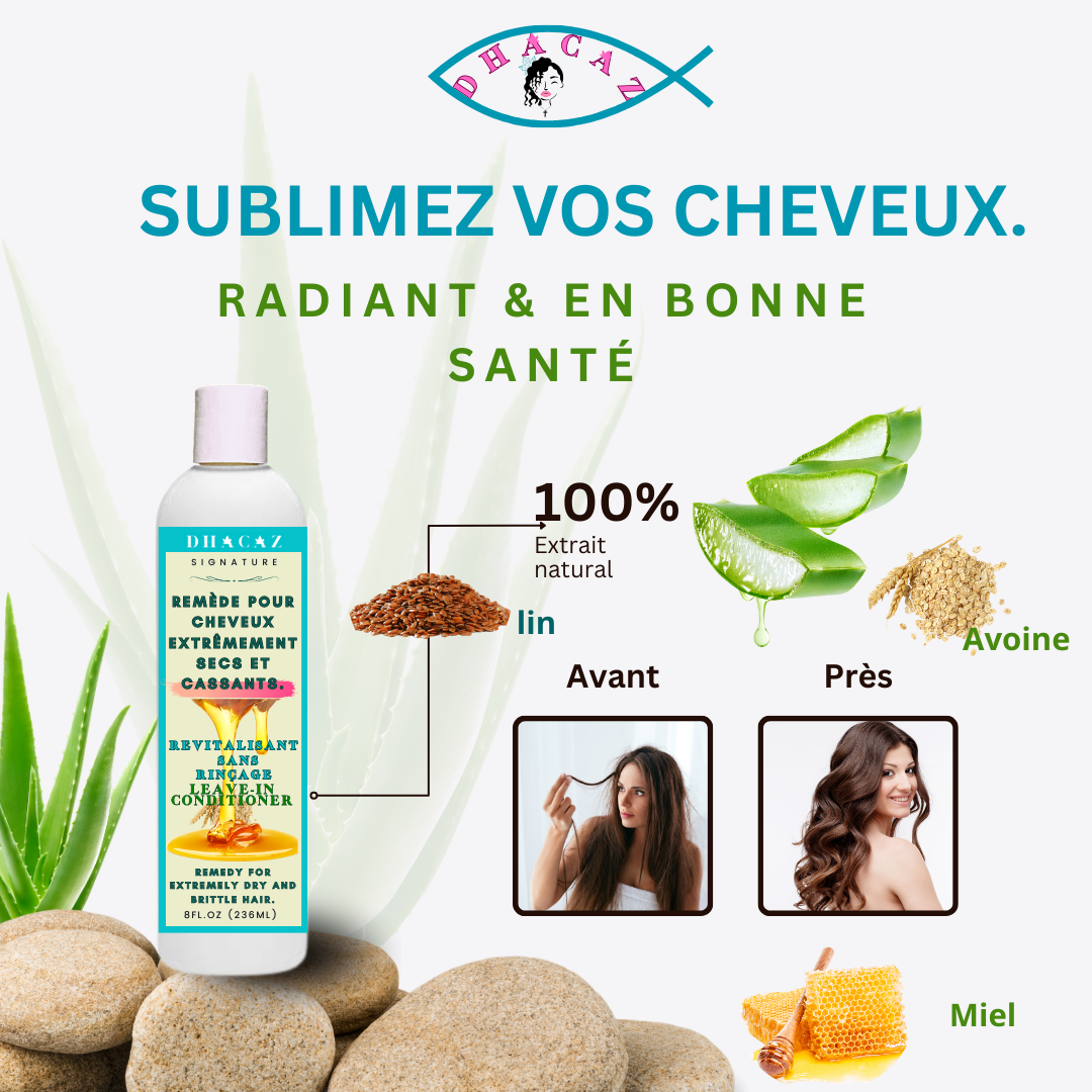 Découvrez notre revitalisant la solution idéale pour des cheveux éclatants de santé ! Ce soin nourrit intensément vos cheveux tout en les protégeant des agressions extérieures. Composé de miel, d'avoine, de lin, d'huile de ricin et d'extraits de plantes, il restaure l'hydratation naturelle de vos cheveux, les rendant doux, brillants et faciles à coiffer. Appliquez simplement une petite quantité sur cheveux humides ou secs et répartissez uniformément pour profiter de ses bienfaits tout au long de la journée. Offrez à vos cheveux le meilleur des soins et laissez-vous séduire par une chevelure resplendissante !