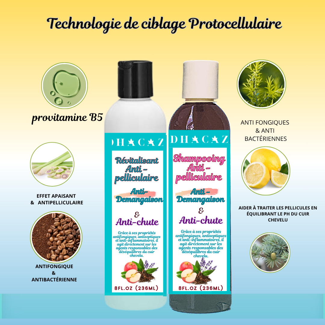 Le vinaigre de cidre et l'acide salicylique agissent en synergie pour exfolier délicatement le cuir chevelu, éliminant les cellules mortes et créant un environnement propice à la croissance des cheveux. L'huile de cèdre et le climbazole constituent des agents antifongiques puissants, réduisant efficacement les pellicules.