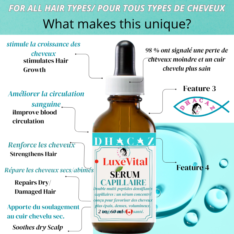 Grâce à ces technologies avancées, vos cheveux gagnent en épaisseur et en vitalité, révélant une chevelure plus saine et éclatante. Intégrez ce duo innovant à votre routine capillaire et assistez à une transformation spectaculaire. Avec une utilisation régulière, vos cheveux retrouveront leur splendeur naturelle, offrant un look éblouissant qui capte tous les regards. Faites confiance à Duo Luxe Vital pour des cheveux à la hauteur de vos attentes.